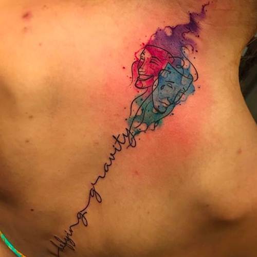 The happy and sad faces, nearly always seen side by side, represent the magic of the theater, in beautiful tattoo form.