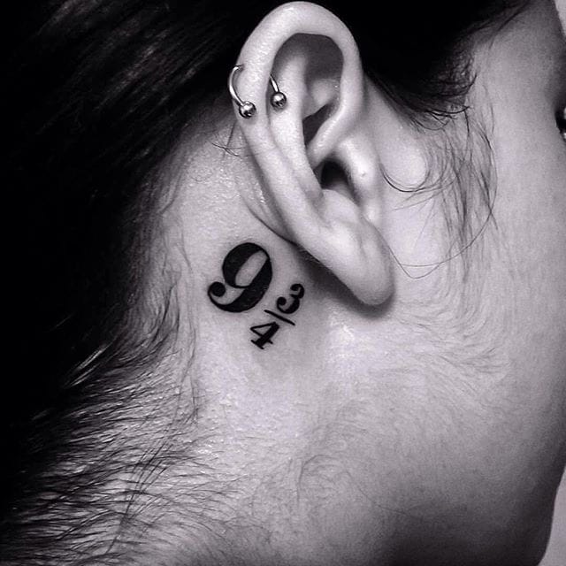 With this dainty Platform 9¾ behind-the-ear tattoo, you never have to look far to get to Hogwarts.